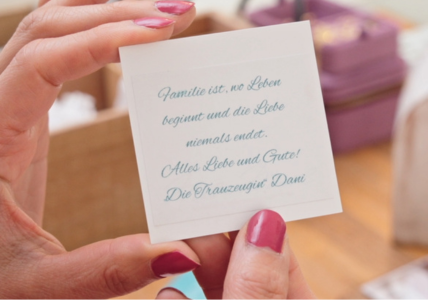 Du bist auf der Suche nach einem besonderen Geschenk – aber die Zeit wird knapp? Mit unserem Express Service bist du auf der sicheren Seite. Für 20 € fertigen wir deine Bestellung mit höchster Priorität an, ziehen sie im Atelier vor und stellen sie innerhalb von 24–48 Stunden fertig.